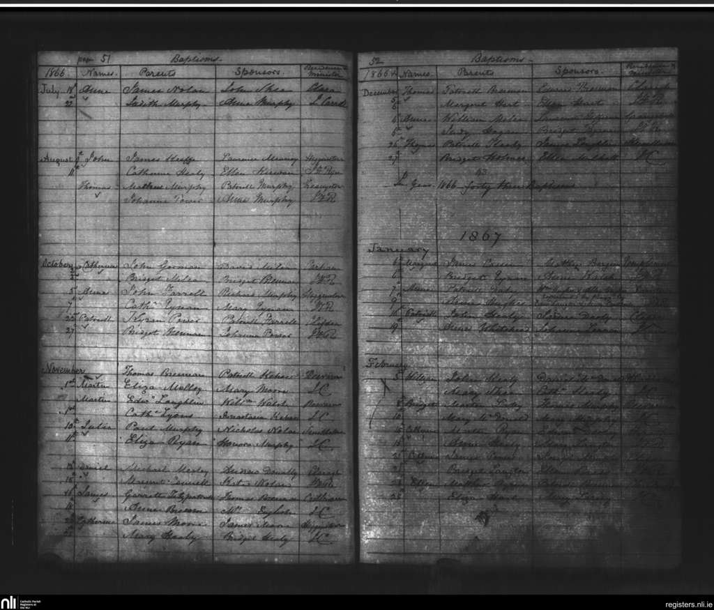 Pitt; County of Kilkenny; Diocese of Ossory. Baptisms, July 1866 to Feb. 1867
