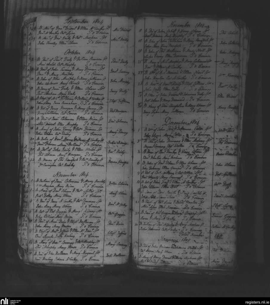 Tracton Abbey; County of Cork; Diocese of Cork and Ross. Baptisms, Sep. 1804 to Jan. 1805