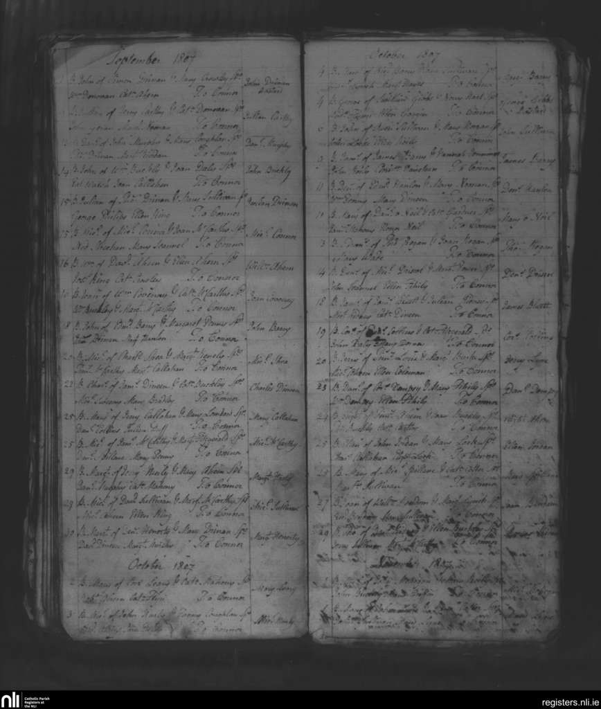 Tracton Abbey; County of Cork; Diocese of Cork and Ross. Baptisms, Sep. 1807 to Nov. 1807