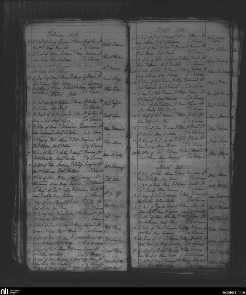 Tracton Abbey; County of Cork; Diocese of Cork and Ross. Baptisms, Feb. 1808 to Apr. 1808