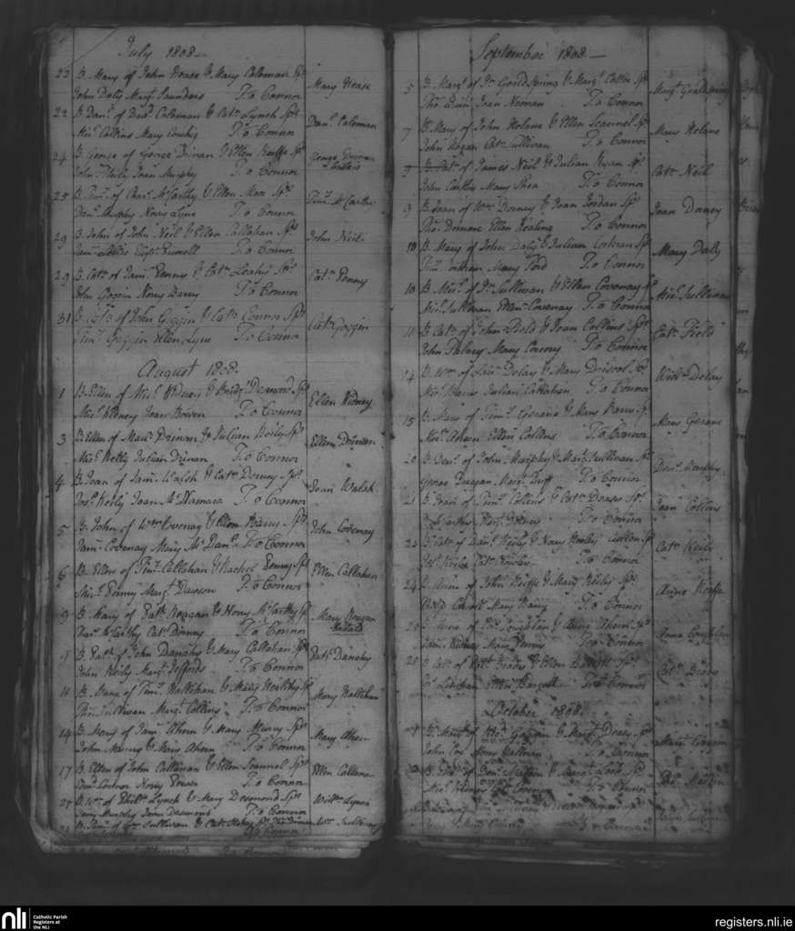 Tracton Abbey; County of Cork; Diocese of Cork and Ross. Baptisms, July 1808 to Oct. 1808