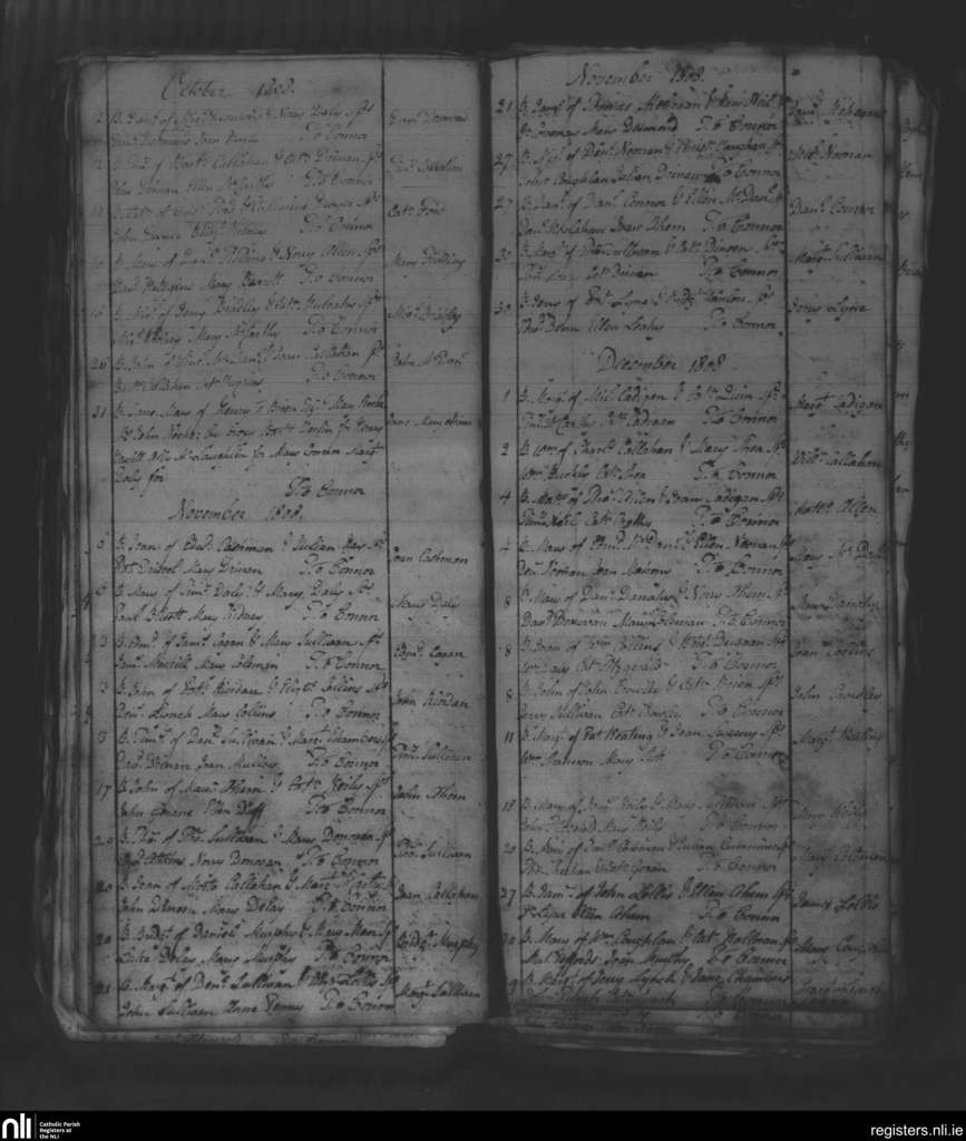 Tracton Abbey; County of Cork; Diocese of Cork and Ross. Baptisms, Oct. 1808 to Dec. 1808