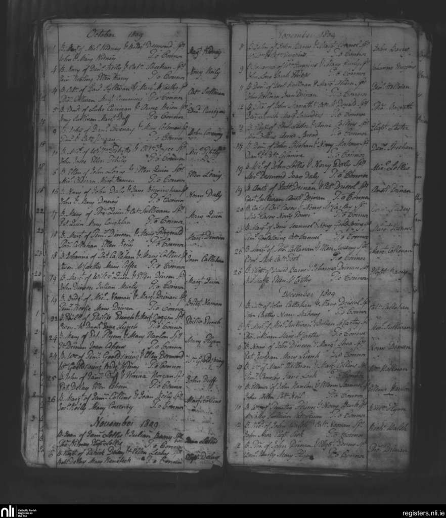 Tracton Abbey; County of Cork; Diocese of Cork and Ross. Baptisms, Oct. 1809 to Dec. 1809