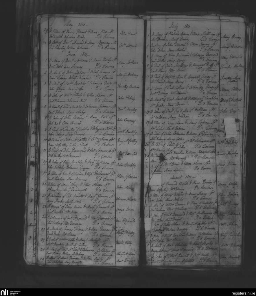 Tracton Abbey; County of Cork; Diocese of Cork and Ross. Baptisms, May 1810 to Aug. 1810