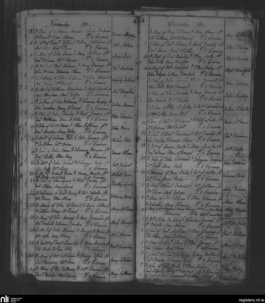 Tracton Abbey; County of Cork; Diocese of Cork and Ross. Baptisms, Nov. 1811 to Jan. 1812