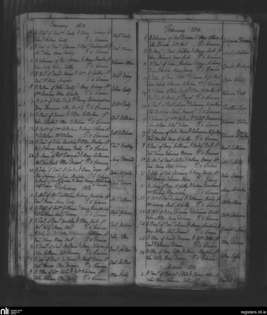 Tracton Abbey; County of Cork; Diocese of Cork and Ross. Baptisms, Jan. 1812 to Mar. 1812