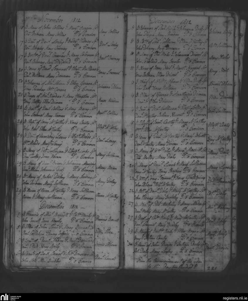 Tracton Abbey; County of Cork; Diocese of Cork and Ross. Baptisms, Nov. 1812 to Dec. 1812