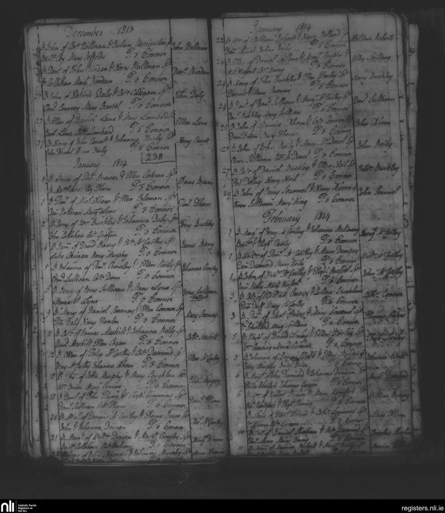 Tracton Abbey; County of Cork; Diocese of Cork and Ross. Baptisms, Dec. 1813 to Feb. 1814