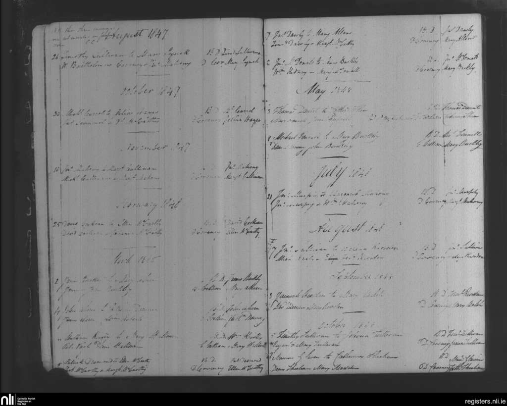 Tracton Abbey; County of Cork; Diocese of Cork and Ross. Marriages, Aug. 1847 to Oct. 1848
