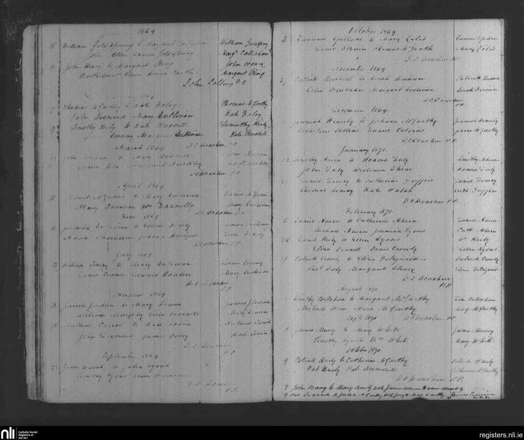 Tracton Abbey; County of Cork; Diocese of Cork and Ross. Marriages, Jan. 1869 to Oct. 1870