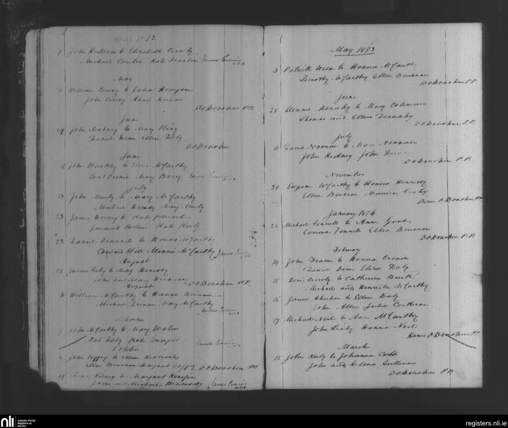 Tracton Abbey; County of Cork; Diocese of Cork and Ross. Marriages, Apr. 1872 to Mar. 1874