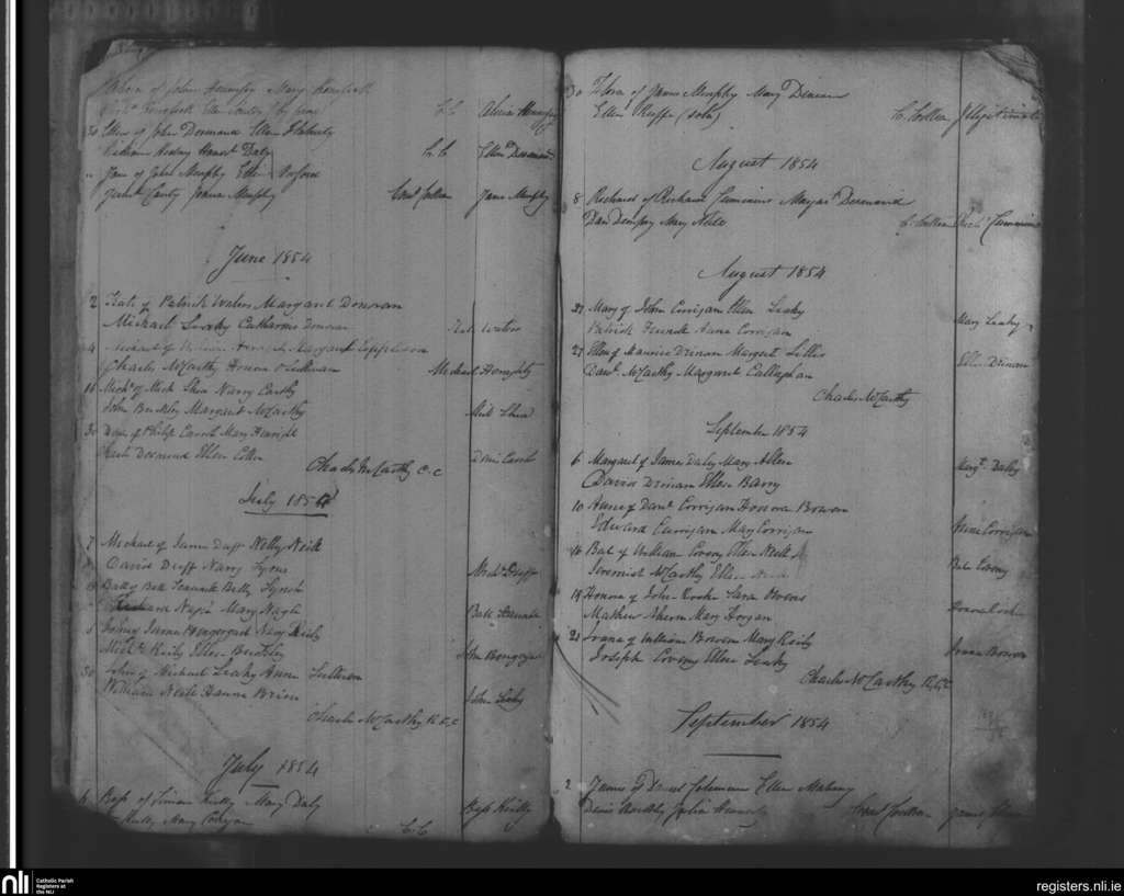 Tracton Abbey; County of Cork; Diocese of Cork and Ross. Baptisms, June 1854 to Sep. 1854