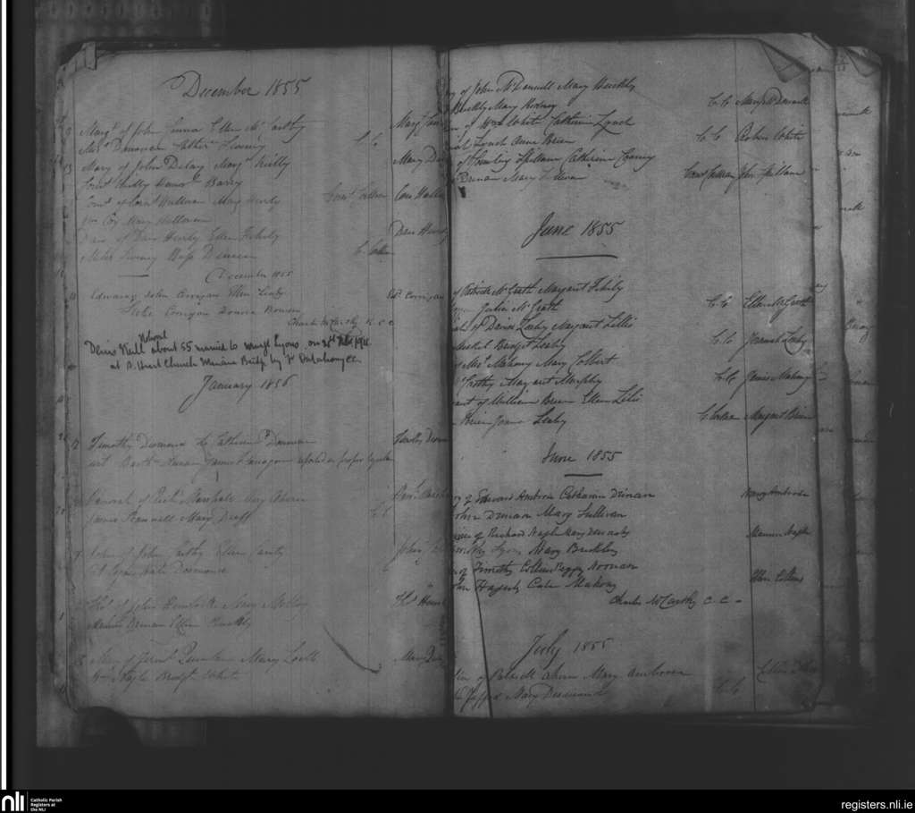 Tracton Abbey; County of Cork; Diocese of Cork and Ross. Baptisms, June 1855 to Jan. 1856