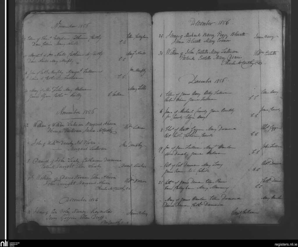 Tracton Abbey; County of Cork; Diocese of Cork and Ross. Baptisms, Nov. 1856 to Dec. 1856
