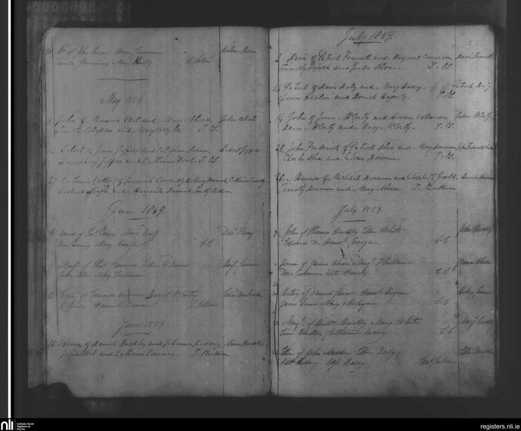 Tracton Abbey; County of Cork; Diocese of Cork and Ross. Baptisms, May 1859 to July 1859