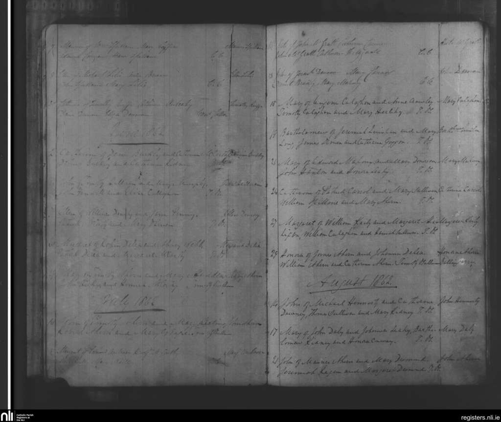 Tracton Abbey; County of Cork; Diocese of Cork and Ross. Baptisms, June 1862 to Aug. 1862