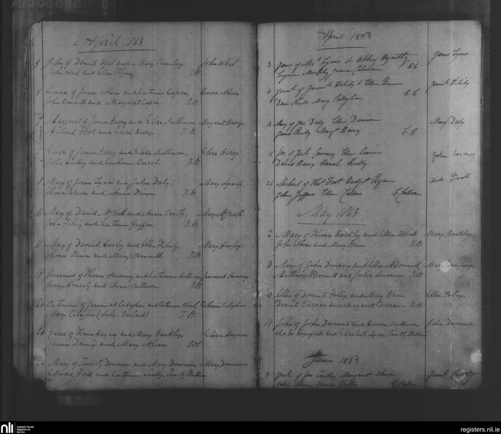 Tracton Abbey; County of Cork; Diocese of Cork and Ross. Baptisms, Apr. 1863 to June 1863
