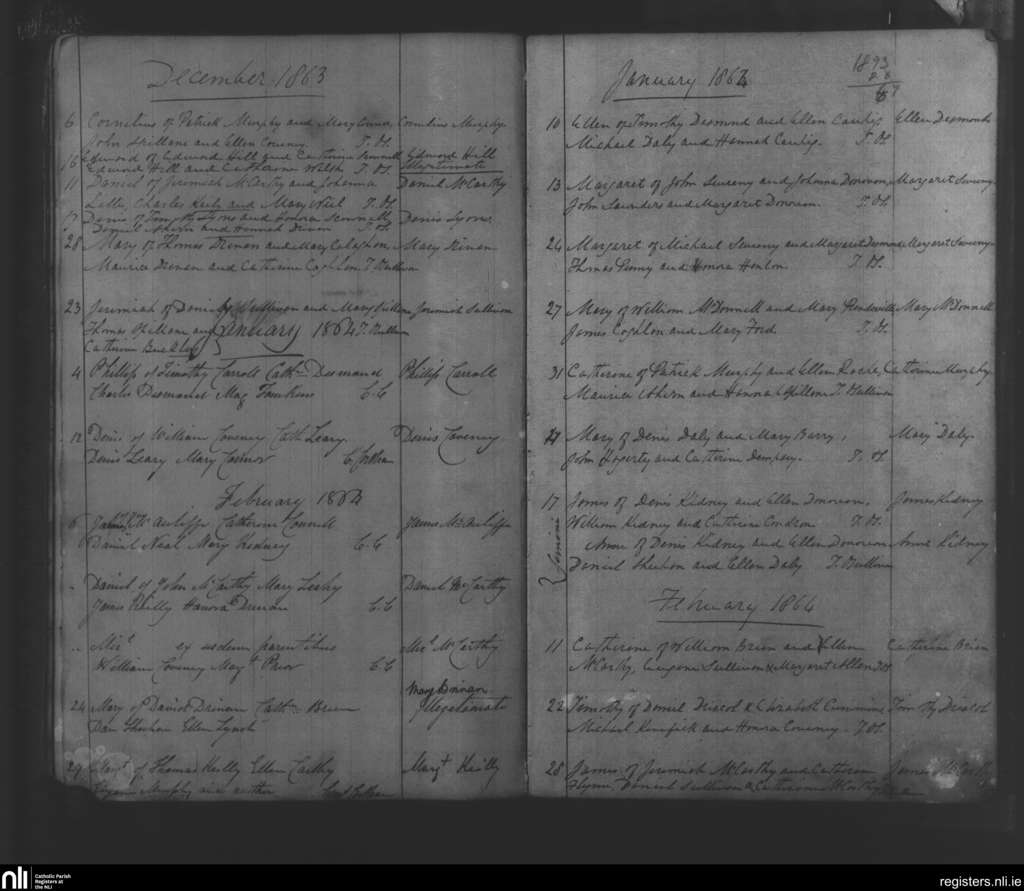Tracton Abbey; County of Cork; Diocese of Cork and Ross. Baptisms, Dec. 1863 to Feb. 1864