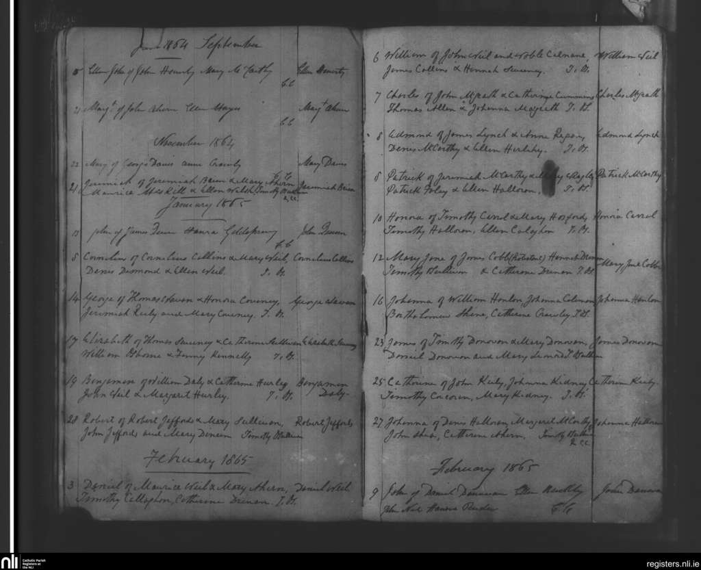 Tracton Abbey; County of Cork; Diocese of Cork and Ross. Baptisms, Oct. 1864 to Feb. 1865