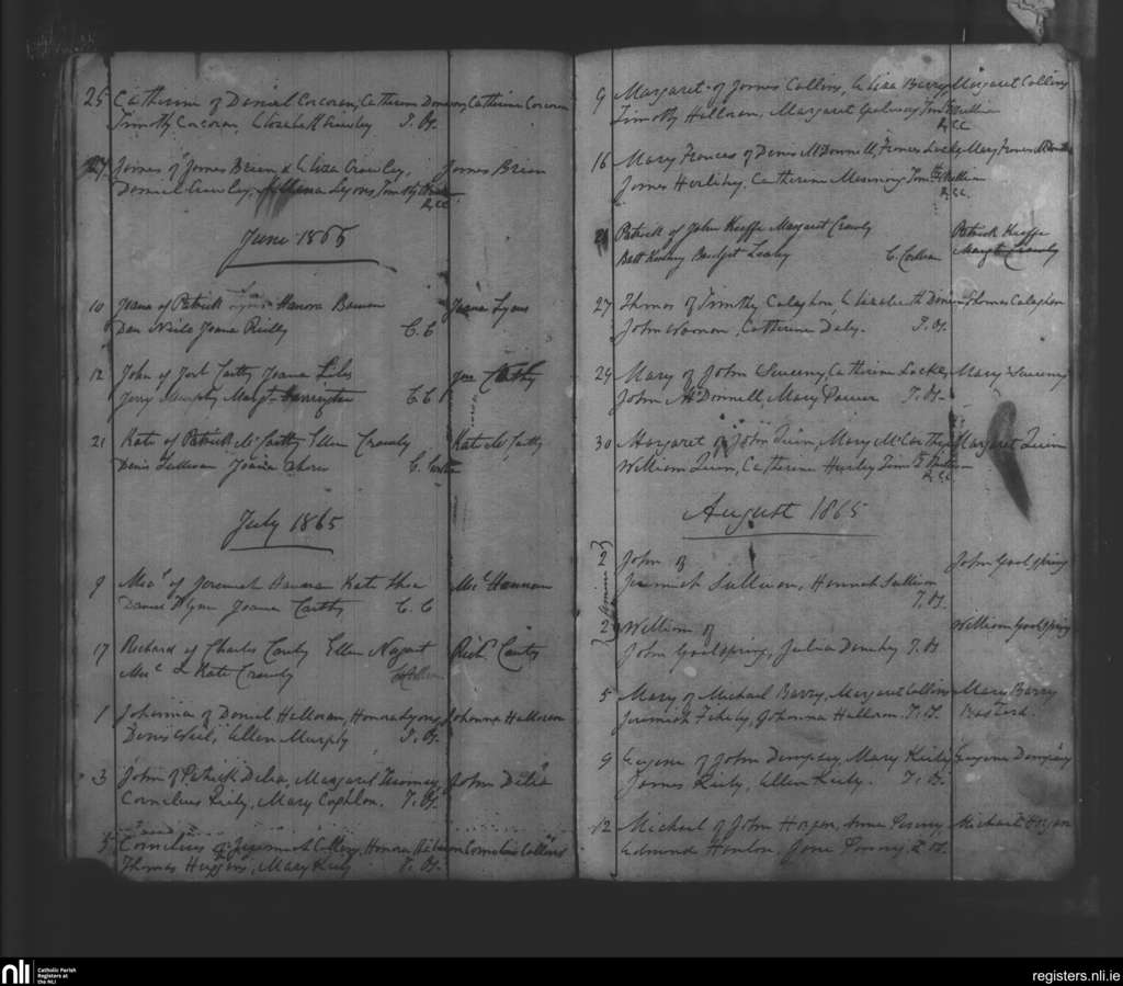 Tracton Abbey; County of Cork; Diocese of Cork and Ross. Baptisms, June 1865 to Aug. 1865