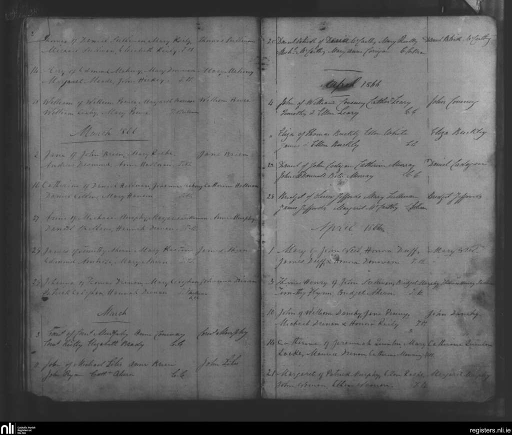 Tracton Abbey; County of Cork; Diocese of Cork and Ross. Baptisms, Feb. 1866 to Apr. 1866