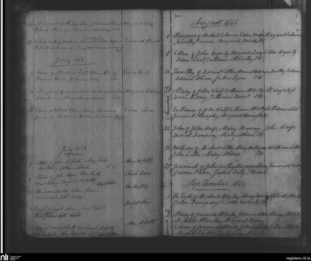 Tracton Abbey; County of Cork; Diocese of Cork and Ross. Baptisms, June 1866 to Sep. 1866