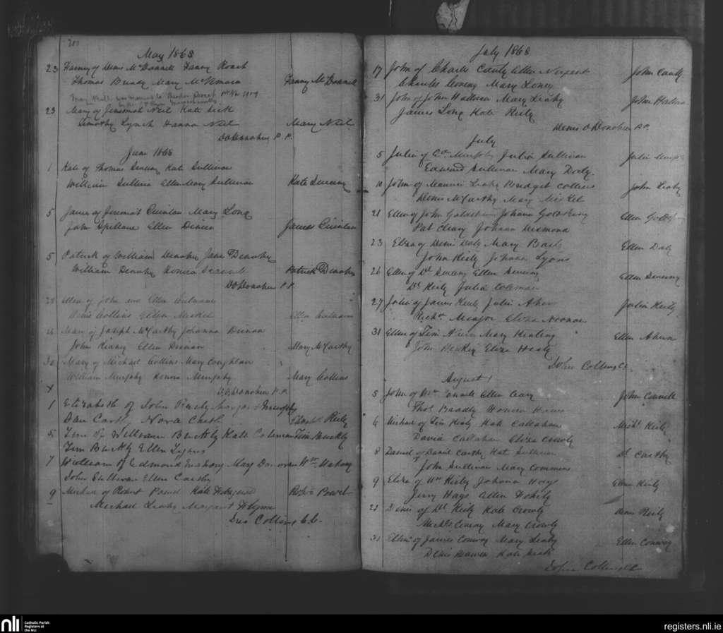 Tracton Abbey; County of Cork; Diocese of Cork and Ross. Baptisms, May 1868 to Aug. 1868