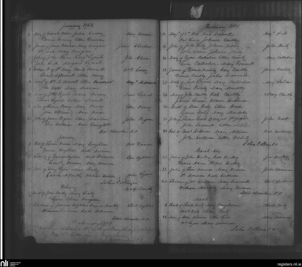 Tracton Abbey; County of Cork; Diocese of Cork and Ross. Baptisms, Jan. 1869 to Mar. 1869