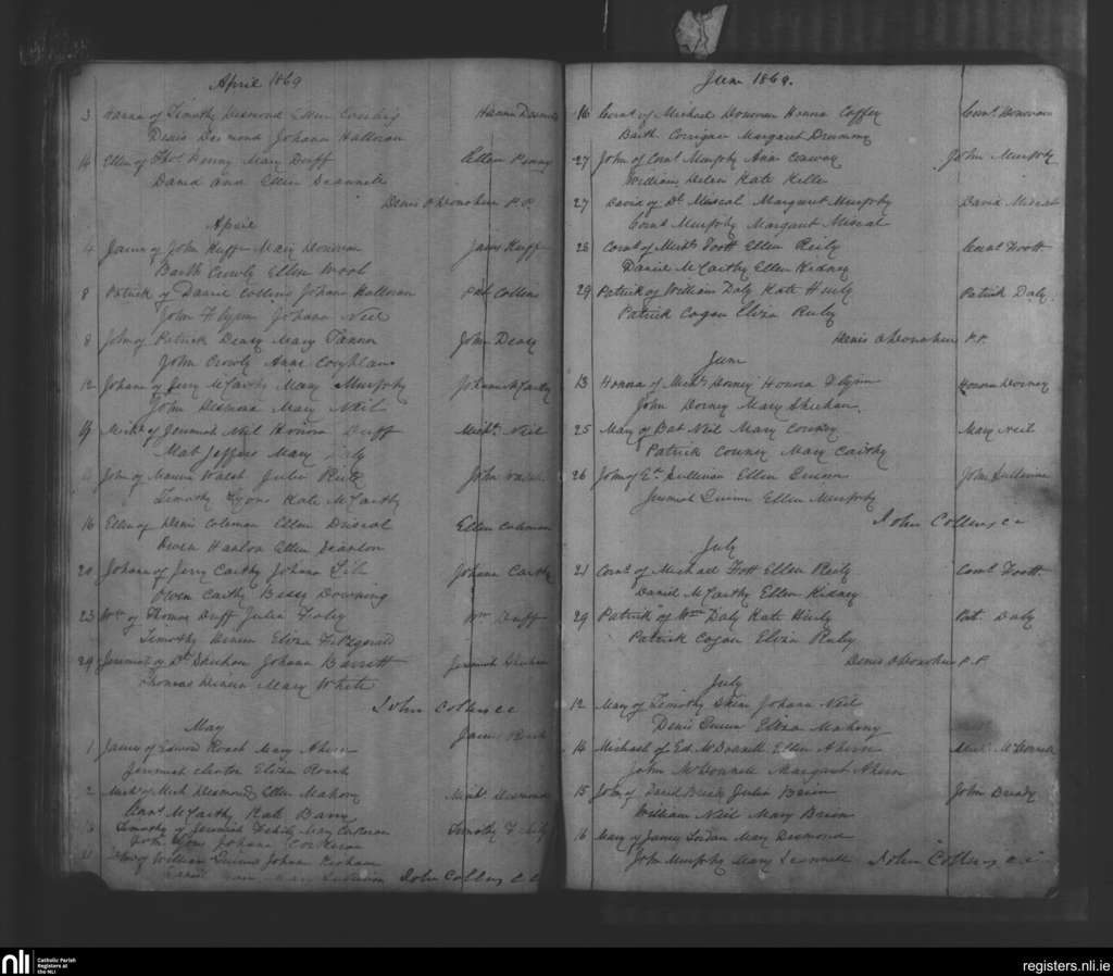 Tracton Abbey; County of Cork; Diocese of Cork and Ross. Baptisms, Apr. 1869 to July 1869