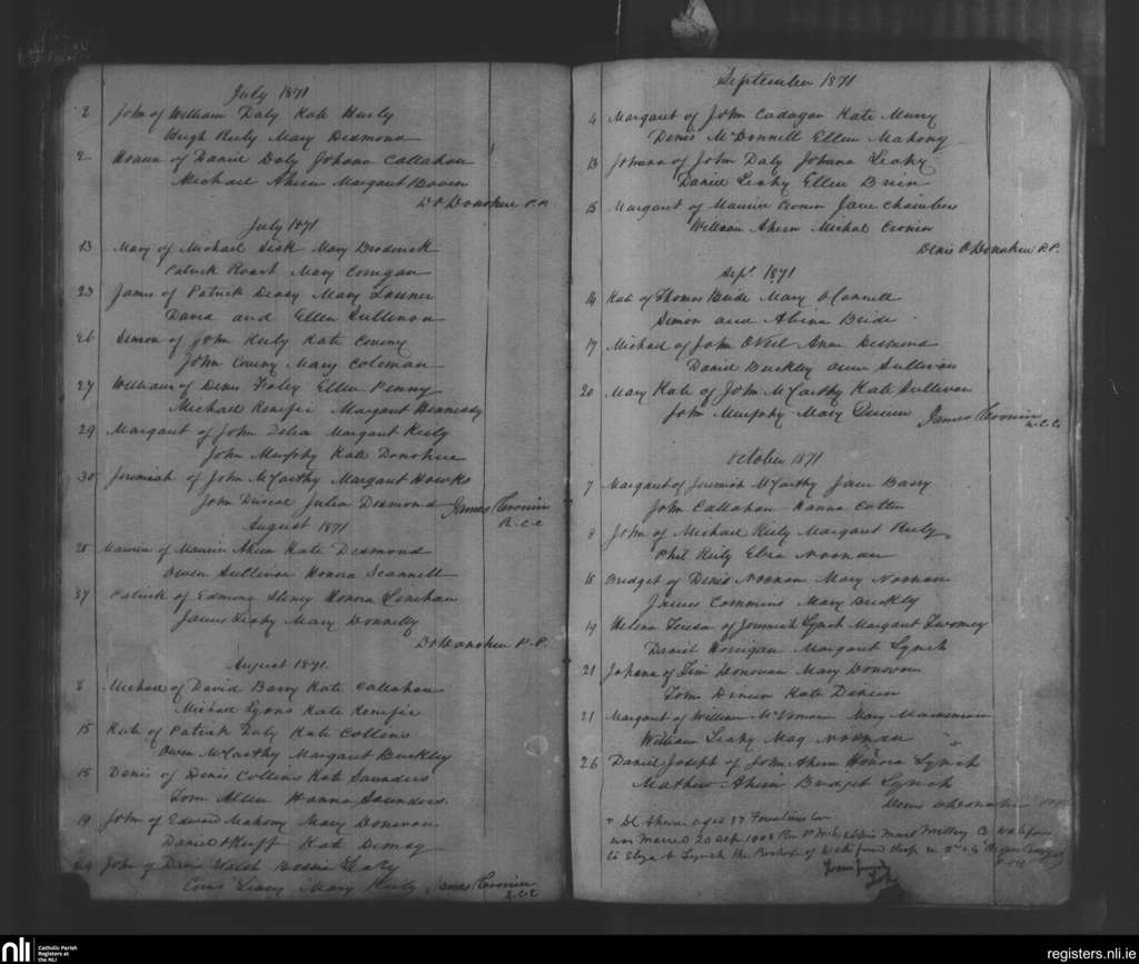 Tracton Abbey; County of Cork; Diocese of Cork and Ross. Baptisms, July 1871 to Oct. 1871