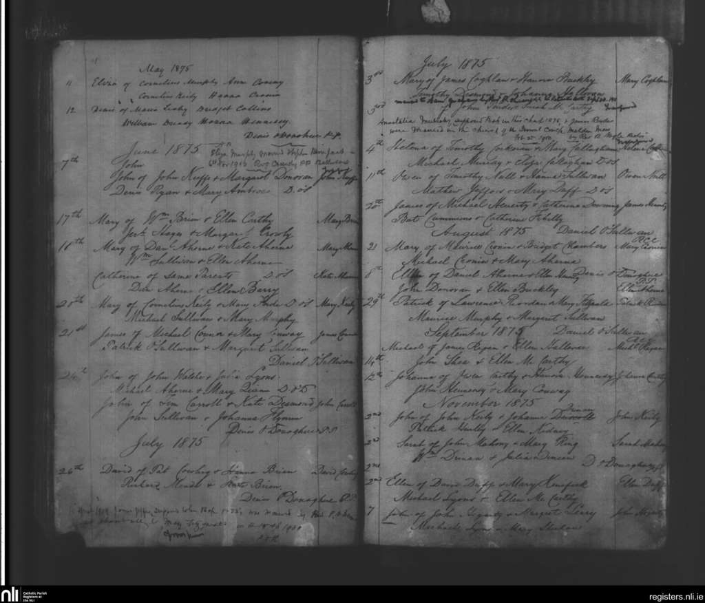 Tracton Abbey; County of Cork; Diocese of Cork and Ross. Baptisms, May 1875 to Nov. 1875