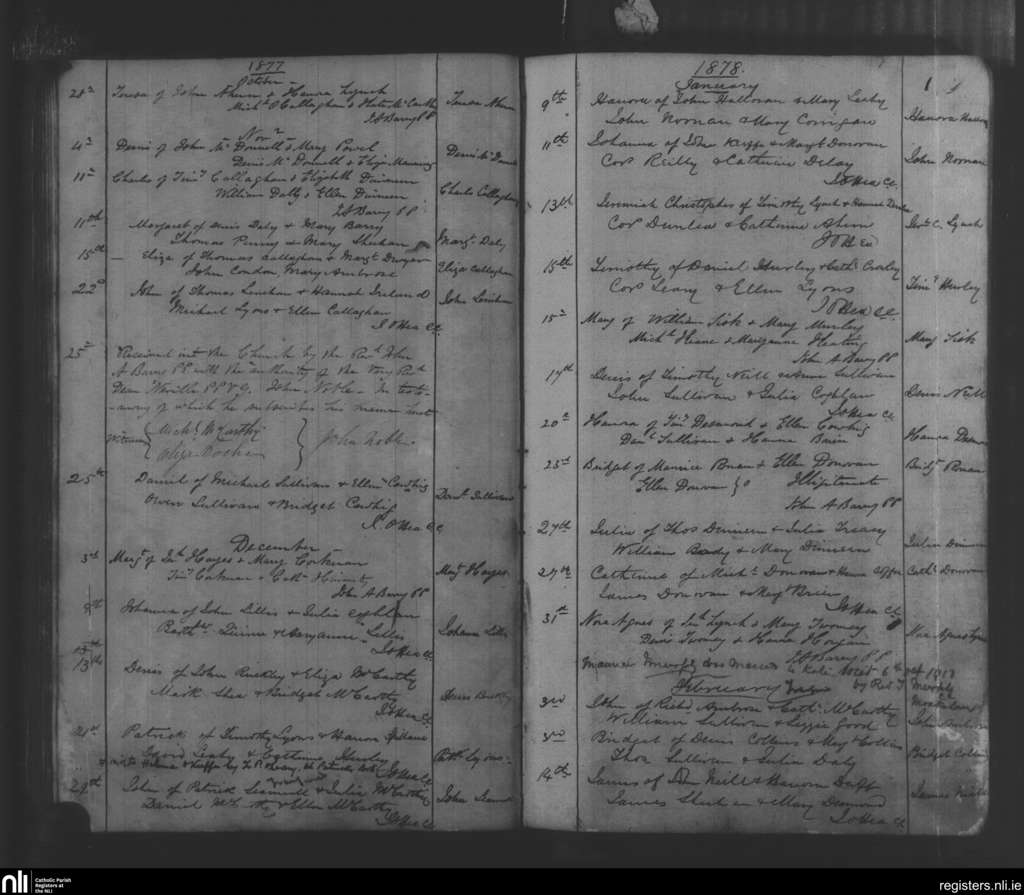 Tracton Abbey; County of Cork; Diocese of Cork and Ross. Baptisms, Oct. 1877 to Feb. 1878