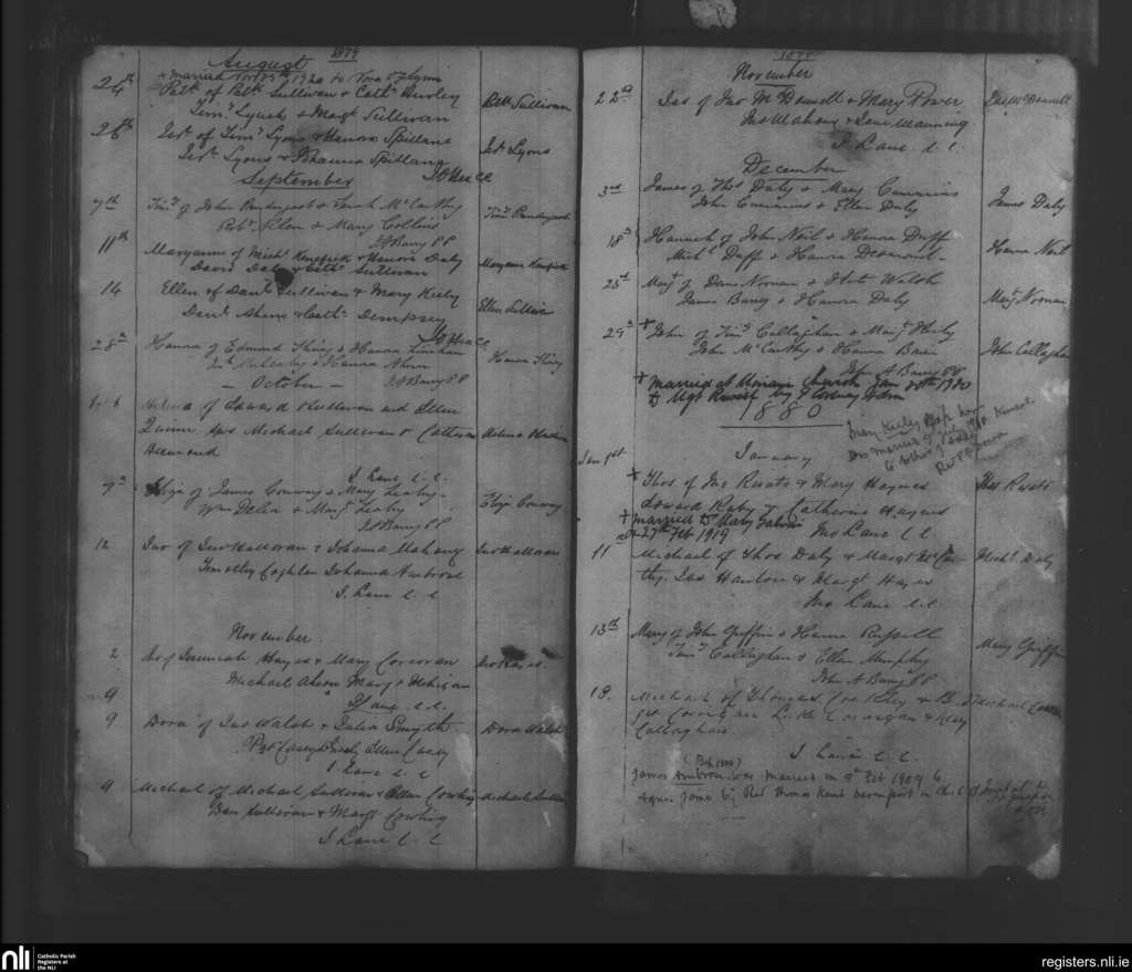 Tracton Abbey; County of Cork; Diocese of Cork and Ross. Baptisms, Aug. 1879 to Jan. 1880