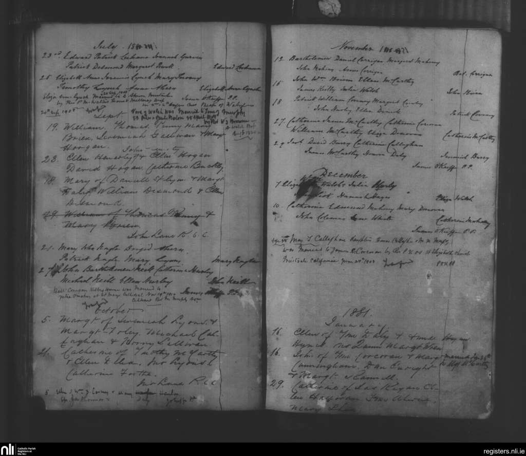 Tracton Abbey; County of Cork; Diocese of Cork and Ross. Baptisms, July 1880 to Jan. 1881