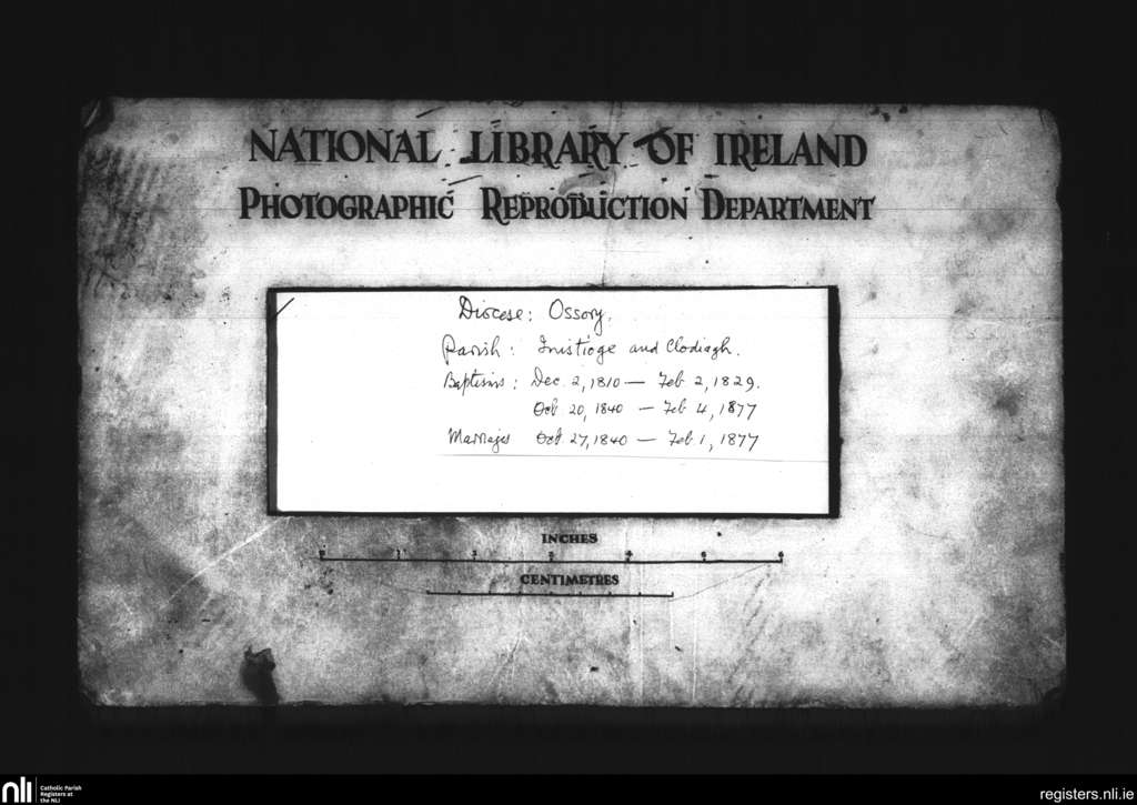 Inistioge; County of Kilkenny; Diocese of Ossory. Baptisms, Marriages