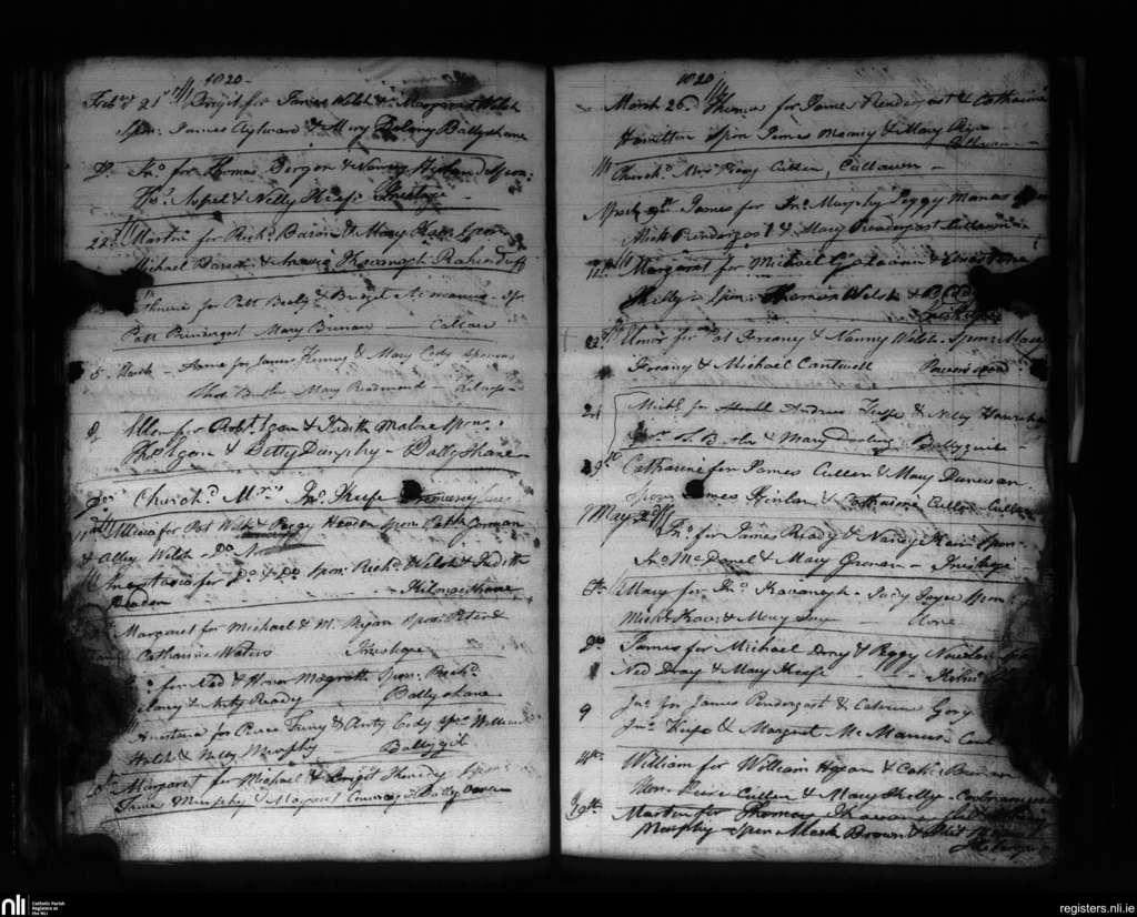 Inistioge; County of Kilkenny; Diocese of Ossory. Baptisms, Feb. 1820 to May 1820