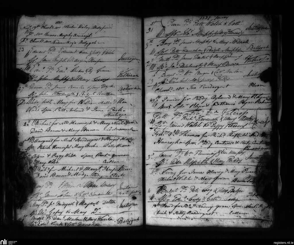 Inistioge; County of Kilkenny; Diocese of Ossory. Baptisms, Nov. 1820 to Feb. 1821