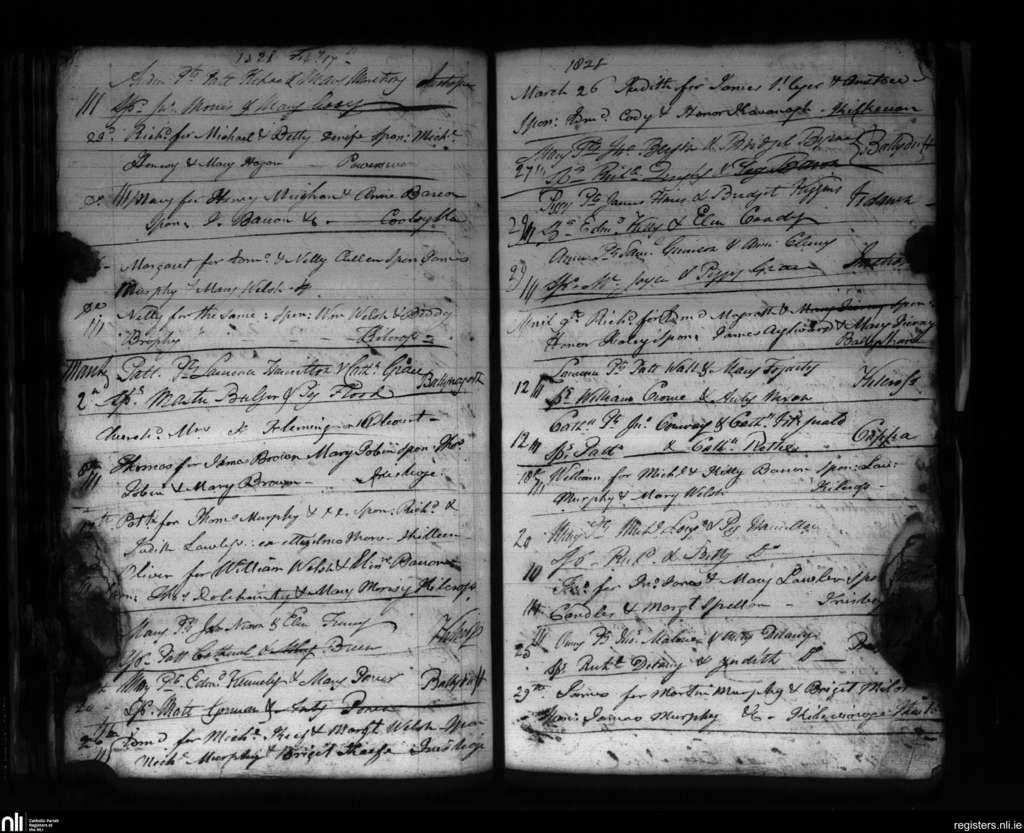 Inistioge; County of Kilkenny; Diocese of Ossory. Baptisms, Feb. 1821 to Apr. 1821