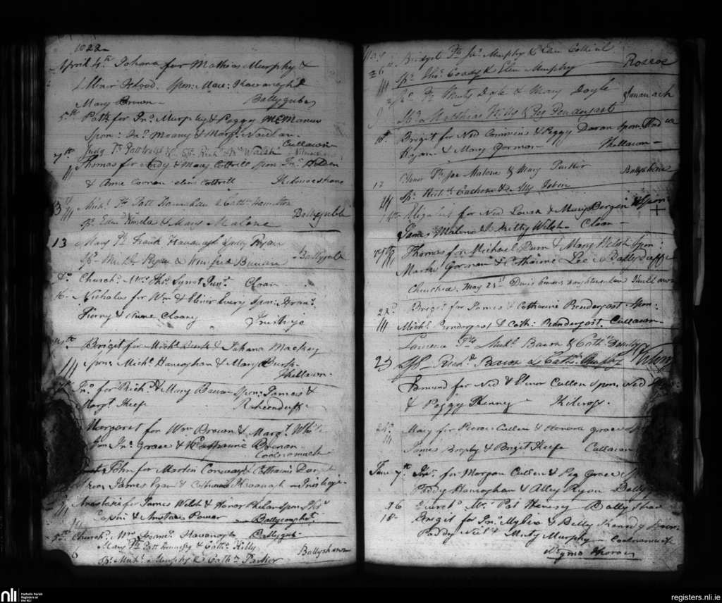 Inistioge; County of Kilkenny; Diocese of Ossory. Baptisms, Apr. 1822 to June 1822