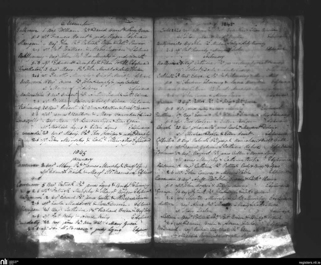Inistioge; County of Kilkenny; Diocese of Ossory. Baptisms, Dec. 1844 to Mar. 1845