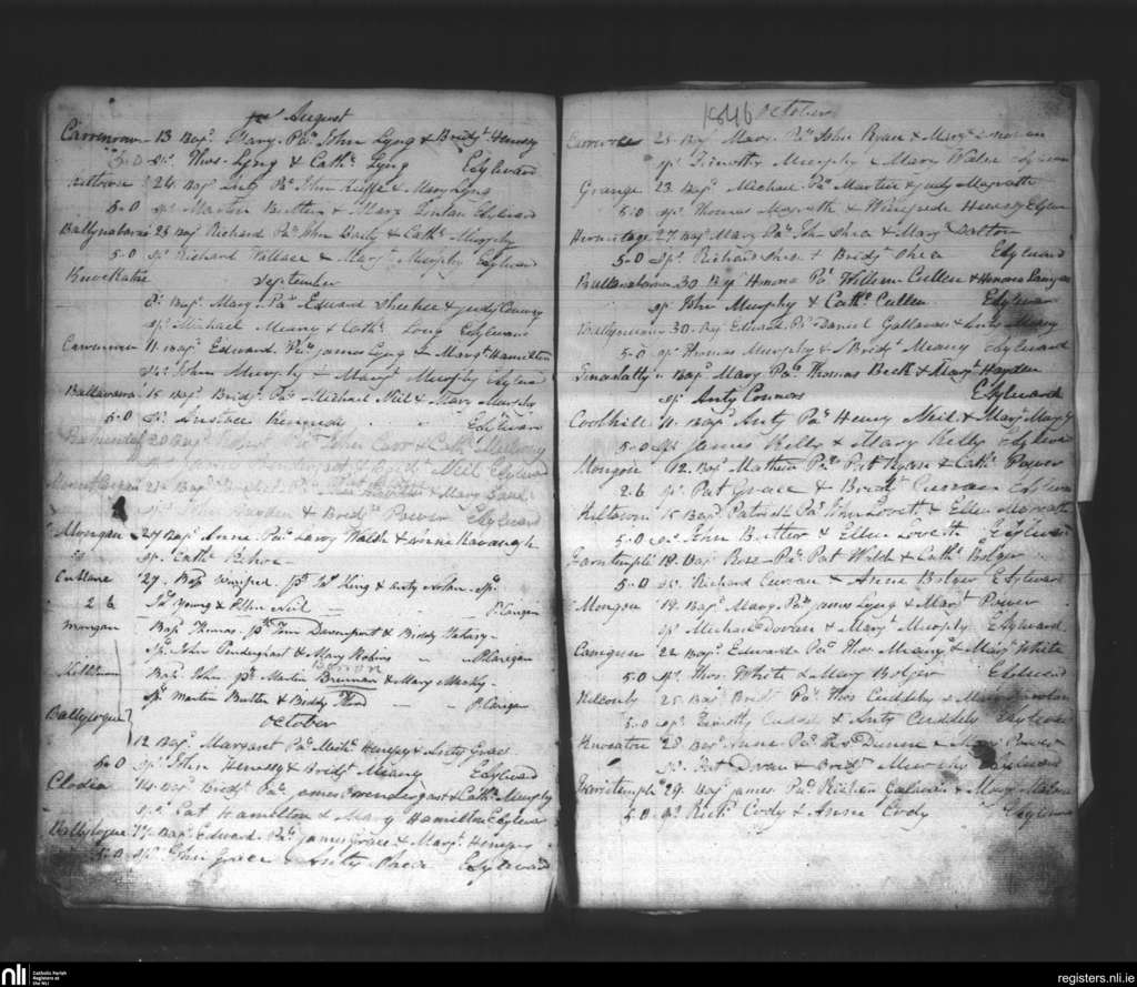 Inistioge; County of Kilkenny; Diocese of Ossory. Baptisms, Aug. 1846 to Nov. 1846