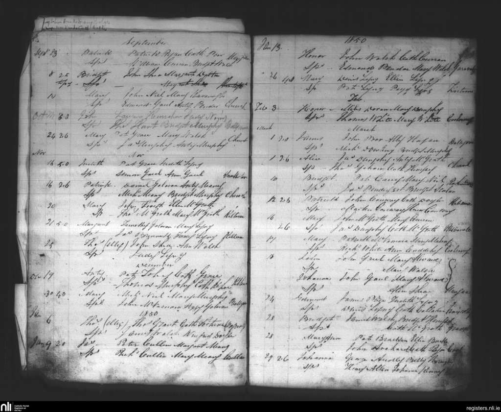 Inistioge; County of Kilkenny; Diocese of Ossory. Baptisms, Sep. 1849 to Mar. 1850