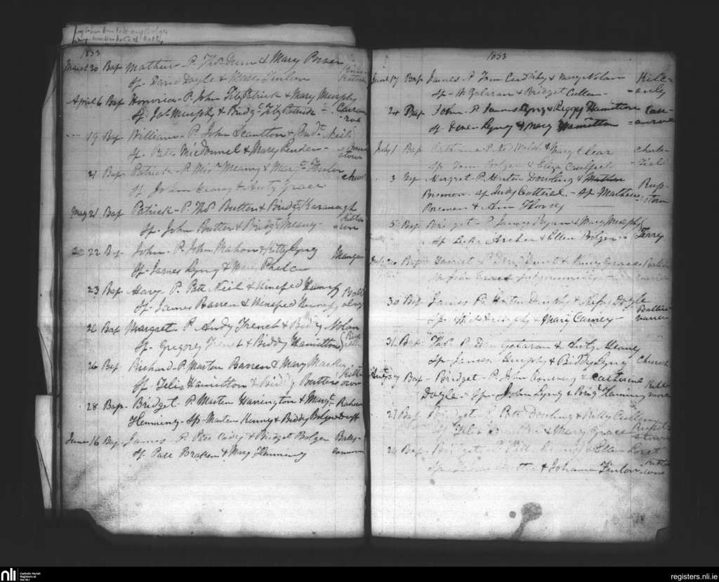 Inistioge; County of Kilkenny; Diocese of Ossory. Baptisms, Mar. 1853 to Aug. 1853