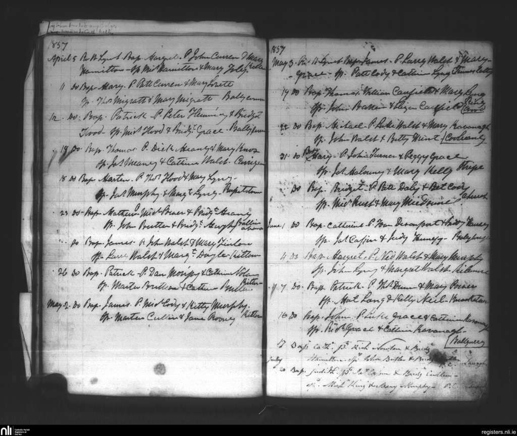 Inistioge; County of Kilkenny; Diocese of Ossory. Baptisms, Apr. 1857 to July 1857