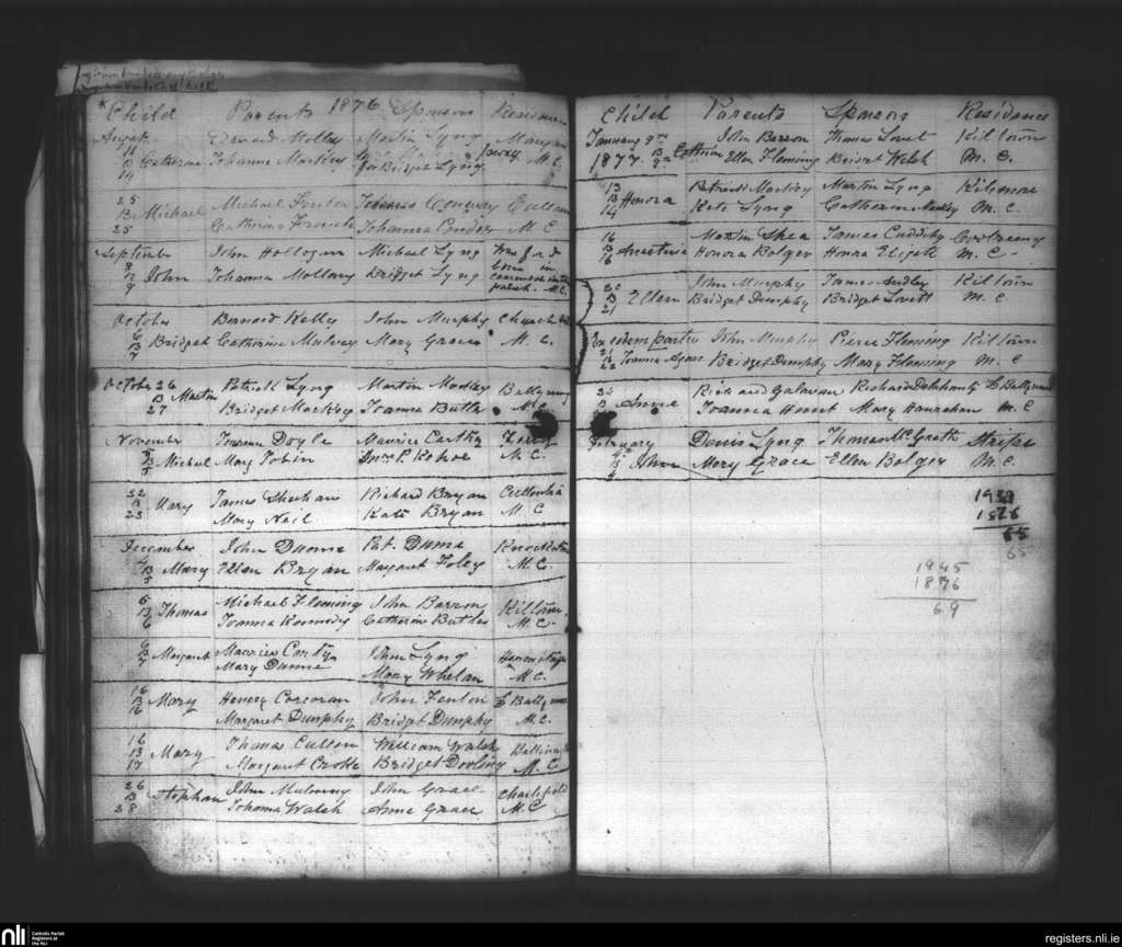 Inistioge; County of Kilkenny; Diocese of Ossory. Baptisms, Aug. 1876 to Feb. 1877