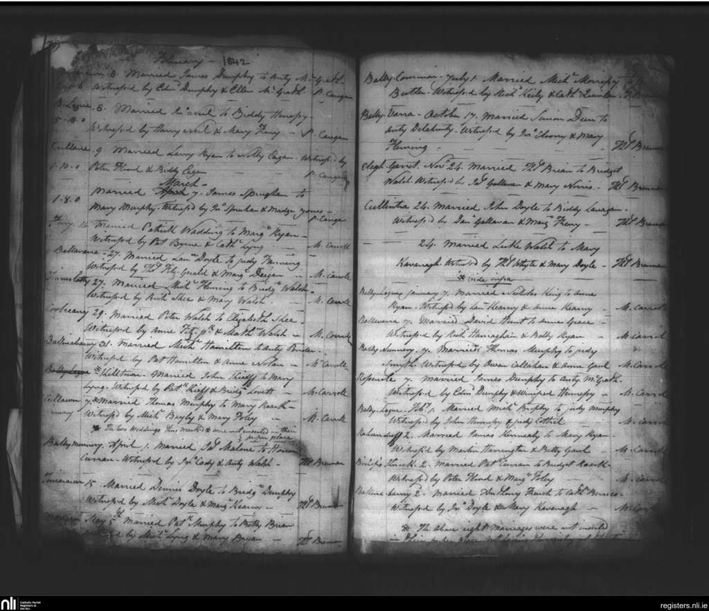 Inistioge; County of Kilkenny; Diocese of Ossory. Marriages, Feb. 1842 to Feb. 1843