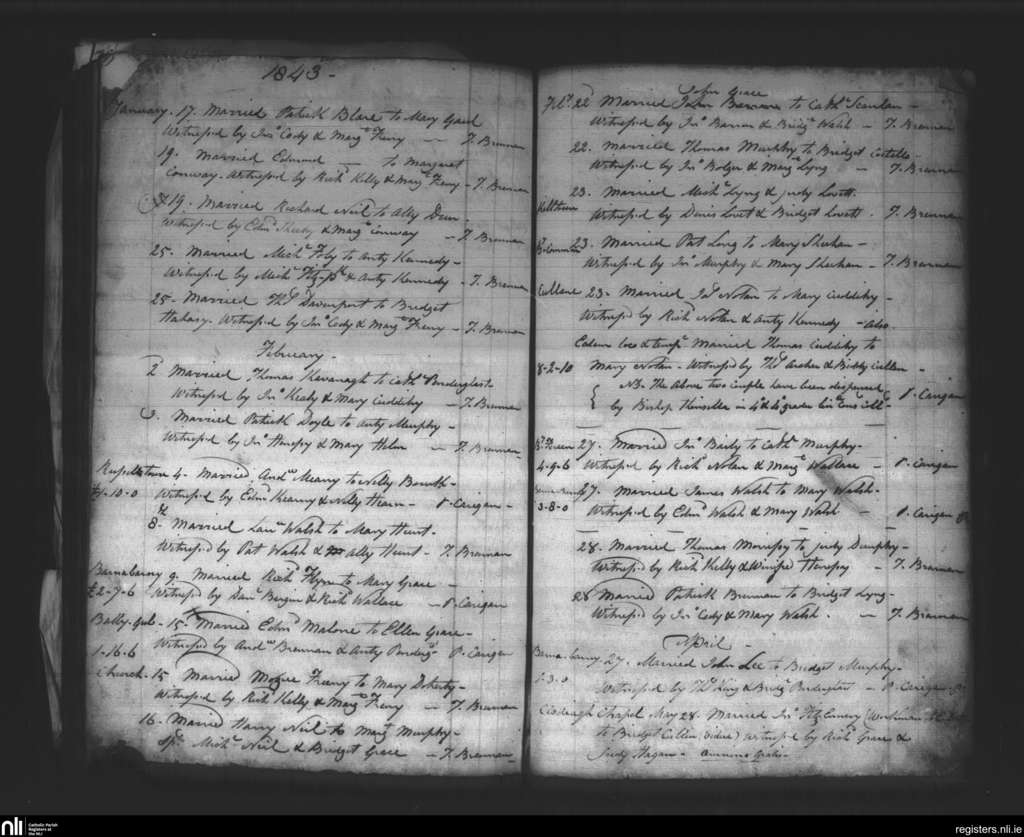 Inistioge; County of Kilkenny; Diocese of Ossory. Marriages, Jan. 1843 to Apr. 1843