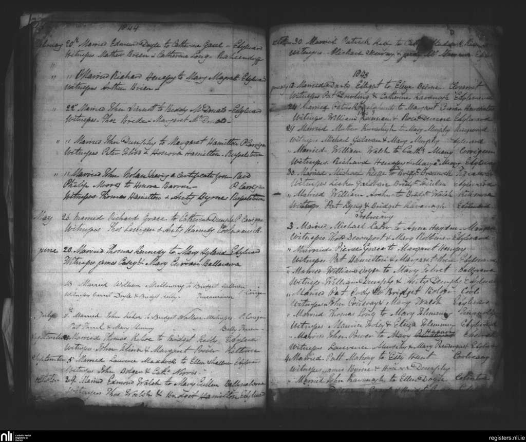Inistioge; County of Kilkenny; Diocese of Ossory. Marriages, Feb. 1844 to Feb. 1845