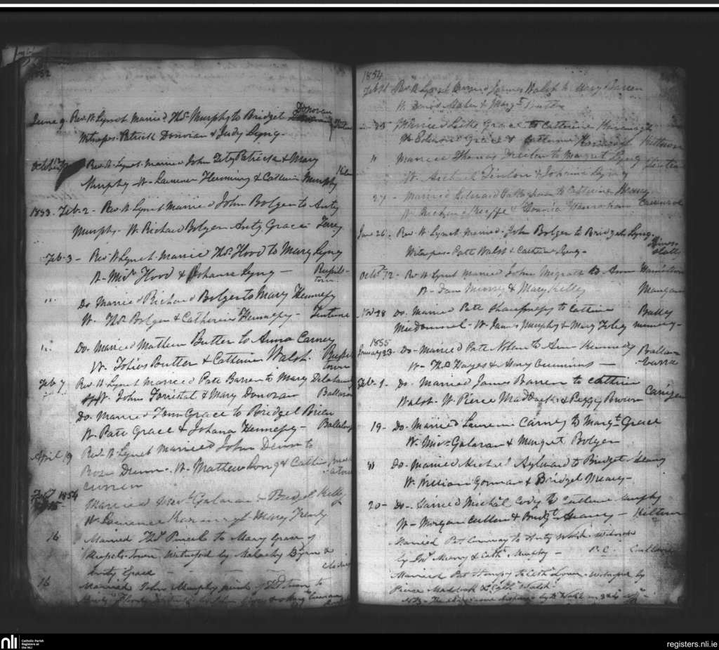 Inistioge; County of Kilkenny; Diocese of Ossory. Marriages, June 1852 to Feb. 1855