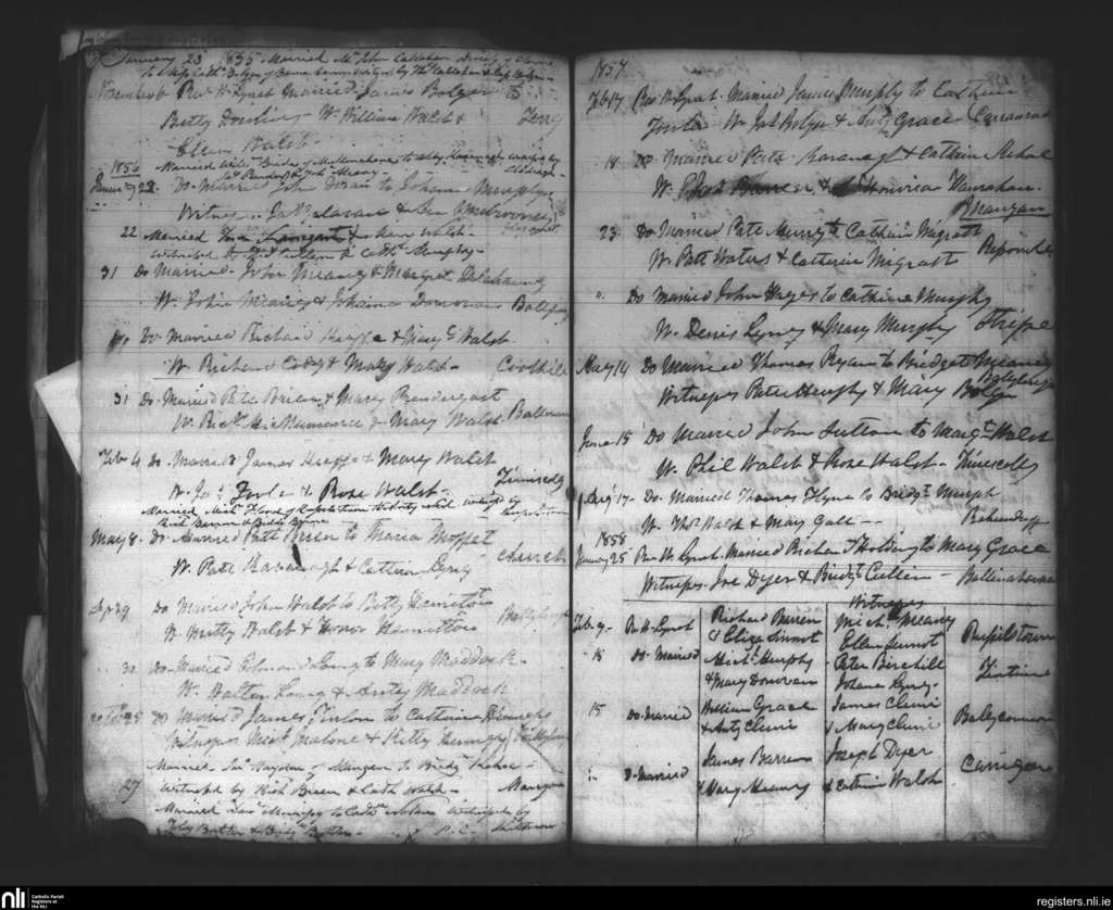 Inistioge; County of Kilkenny; Diocese of Ossory. Marriages, Jan. 1855 to Feb. 1858
